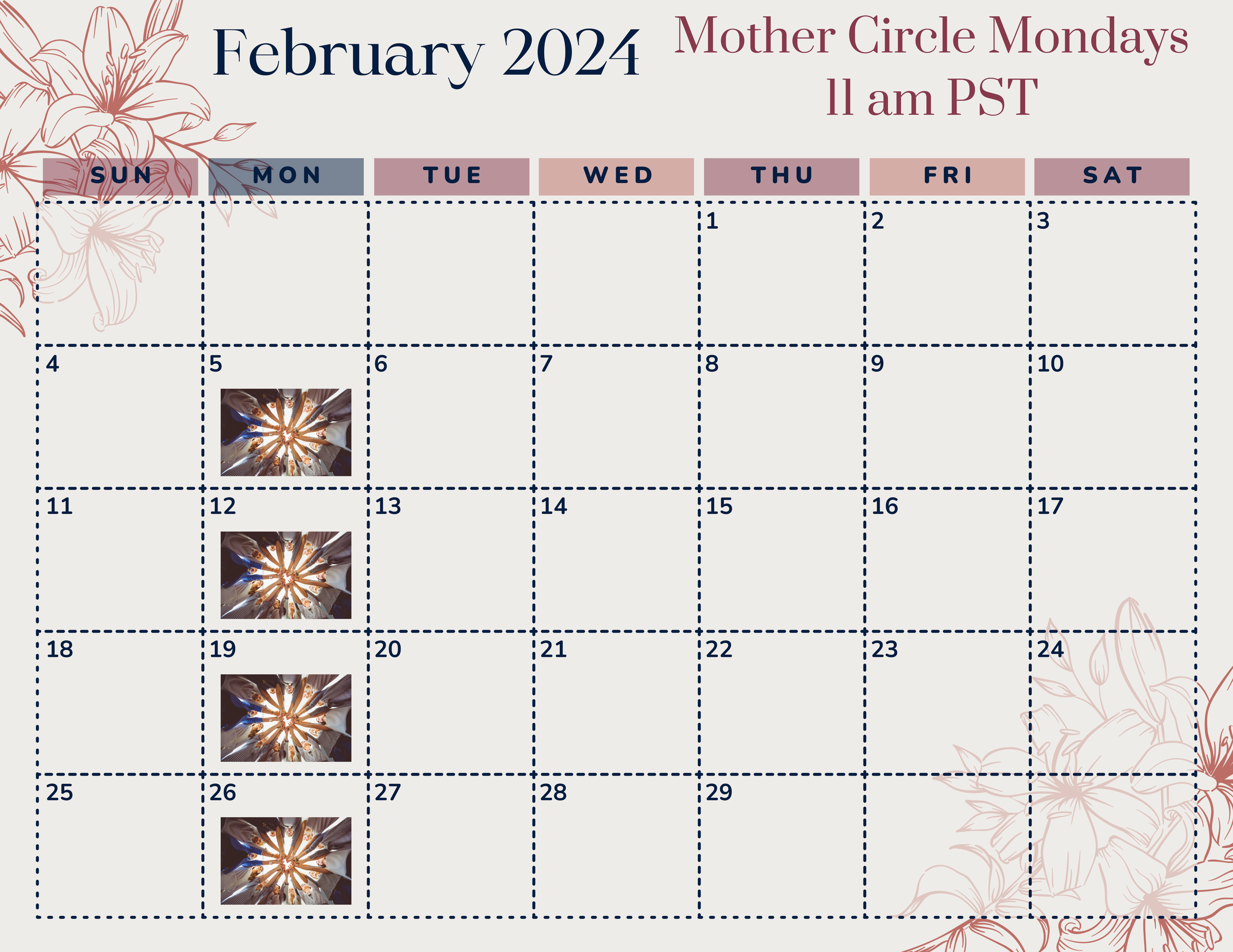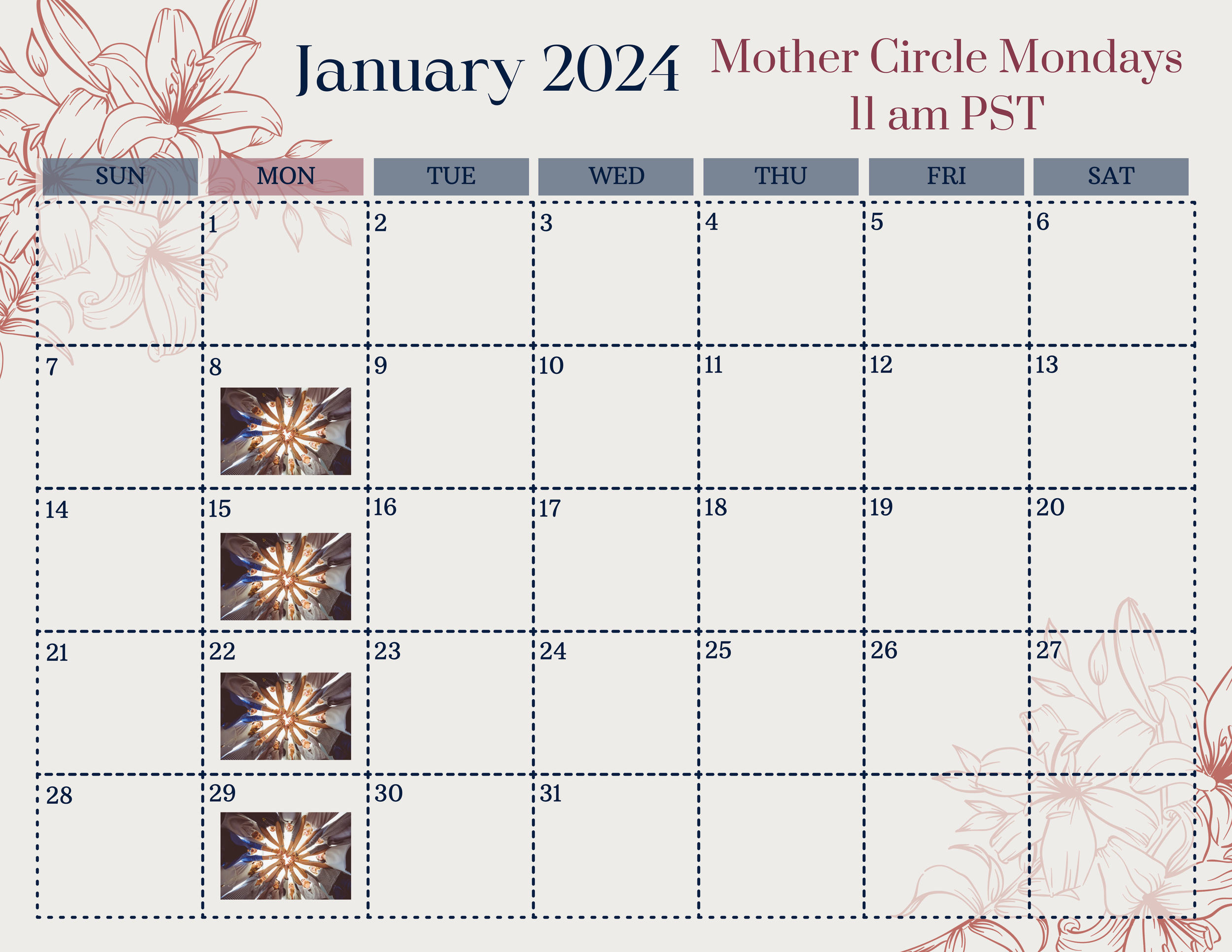 We Start Mother Circle Mondays on January 8th 2024 at 11 aM pst